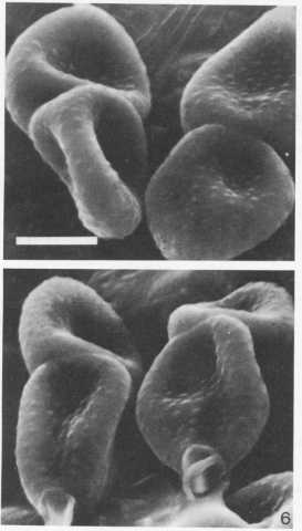 and spore base (below) and uniform covering of warts. Scale: 8 ยต